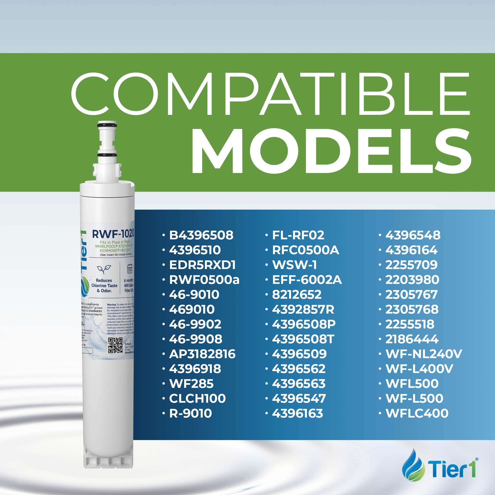 - COMPATIBLE REPLACEMENT MODELS – This water filter replaces 4396508, 4396510, EDR5RXD1, RWF0500a, 46-9010, 469010, 46-9902, 46-9908, AP3182816, 4396918, WF285, CLCH100, R-9010, FL-RF02, RFC0500A, WSW-1, EFF-6002A, 8212652, 4392857R, 4396508P, 4396508T, 4396509, 4396562, 4396563, 4396547, 4396163, 4396548, 4396164, 2255709, 2203980, 2305767, 2305768, 2255518, 2186444, WF-NL240V, WF-L400V, WFL500, WF-L500, WFLC400, WF-NLC240V, WF-NLC250, WF-NL300, NLC240V, NL240, NL240V, NL300, PNL240V, 4392857.