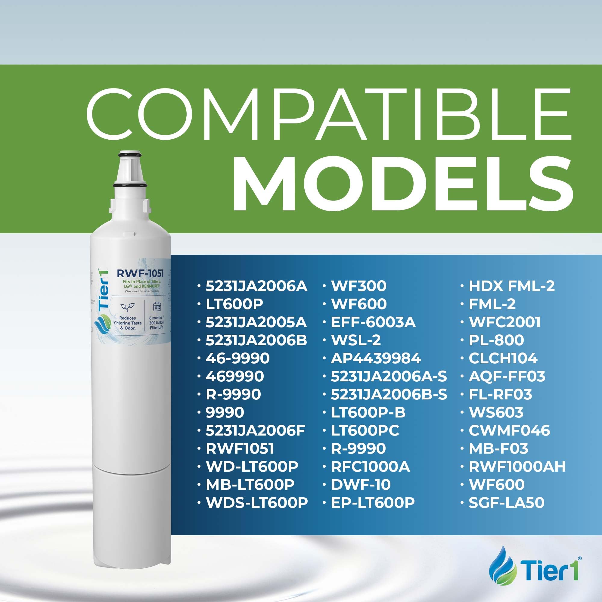 - COMPATIBLE REPLACEMENT MODELS – This water filter is a replacement for 5231JA2006A, LT600P, 5231JA2005A, 5231JA2006B, 46-9990, 469990, R-9990, 9990, 5231JA2006F, RWF1051,WD-LT600P, MB-LT600P, WDS-LT600P, WF300, WF600, EFF-6003A, WSL-2, AP4439984, 5231JA2006A-S, 5231JA2006B-S, LT600P-B, LT600PC, R-9990, RFC1000A, DWF-10, EP-LT600P, HDX FML-2, FML-2, WFC2001, PL-800, CLCH104, AQF-FF03, FL-RF03, WS603, CWMF046, MB-F03, RWF1000AH, WF600, SGF-LA50, and PP1004.